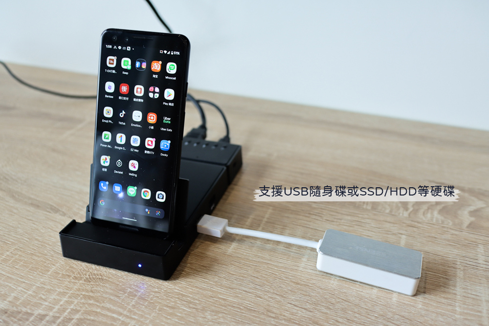 轉接座不但支援USB隨身碟或SSD/HDD等硬碟